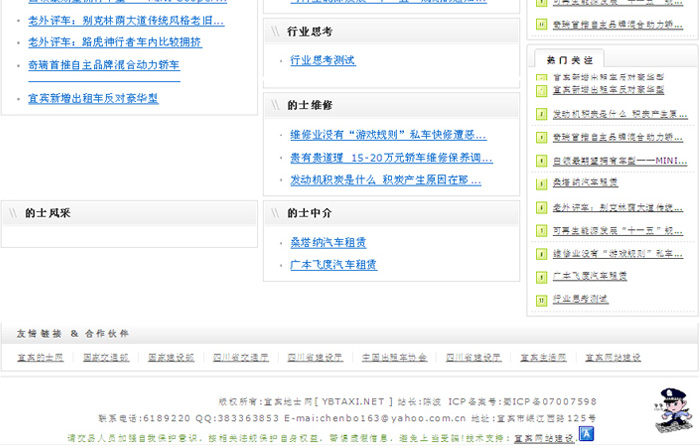 网站开通后,我们真诚的希望各位的士朋友能够从百忙之中,抽出时间,关心网站的建设和发展,不断地向我们提出意见和建议,同时也希望各位老师积极地向网站投稿,大力宣传的士行业各方面所取得的成绩,促进的士之间交流和发展,全面提升宜宾的士服务水平